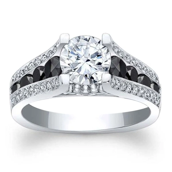 خاتم كلاسيكي مرصع بأحجار الزركون المقلد بأربعة مخالب للنساء، خاتم ذراع ملتوي مزدوج اللون، خاتم خطوبة وزواج للنساء