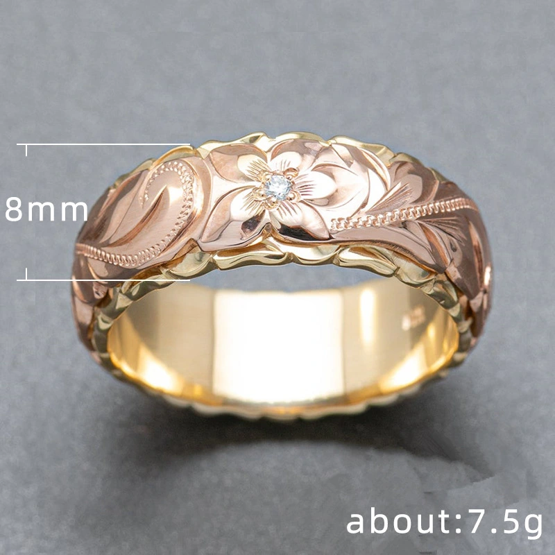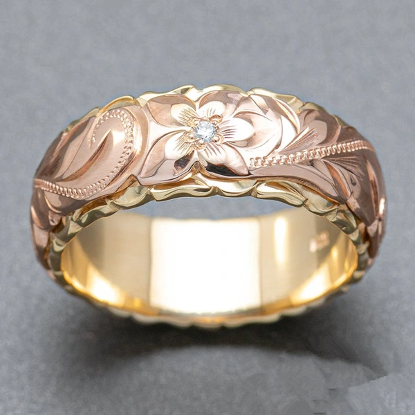خاتم نسائي جديد رائع منحوت على شكل وردة بلونين خاتم هدية زفاف أوروبي وأمريكي بالجملة