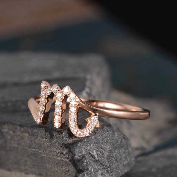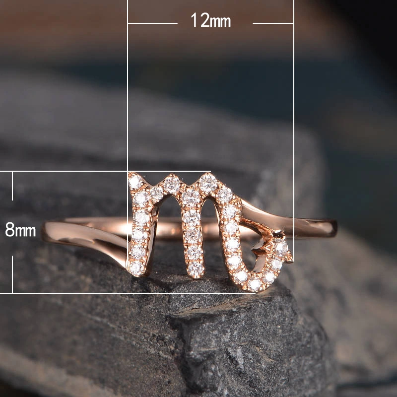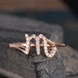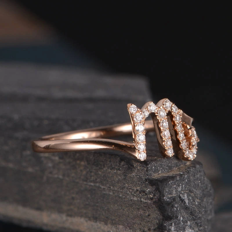 خاتم نسائي جديد على شكل حرف M من الألماس بتصميم أوروبي وأمريكية مطلي بالنحاس ومرصع بالزركون من الذهب الوردي