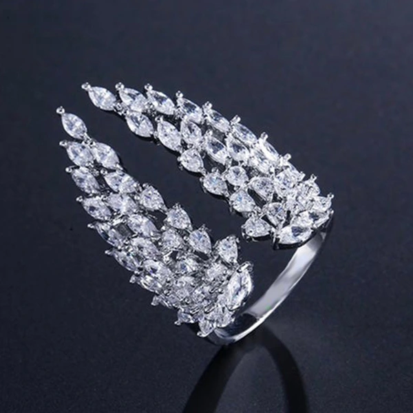خاتم نسائي جديد مفتوح على الطراز الكوري مليء بأجنحة من الزركون الماسي قابل للتعديل خاتم سحر عصري