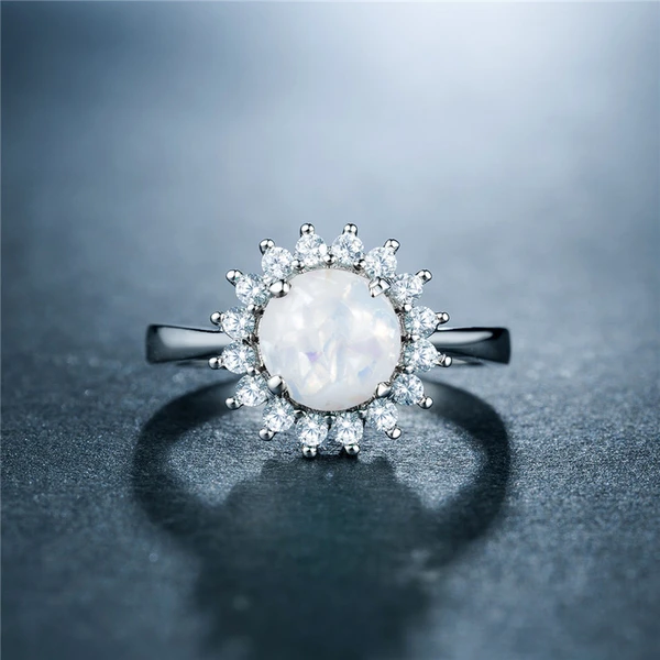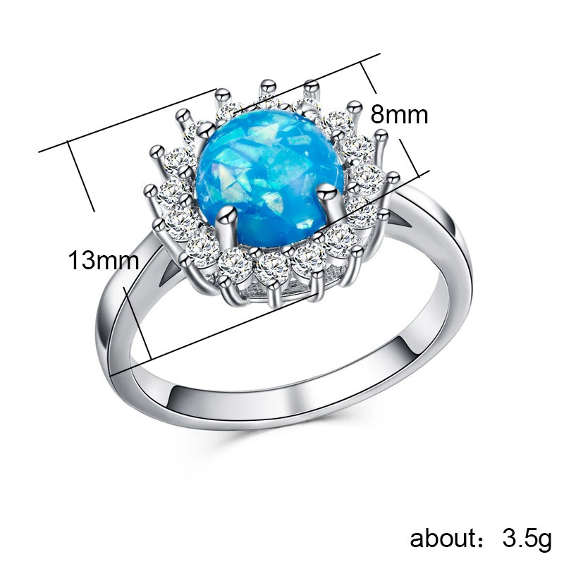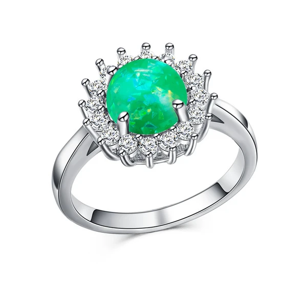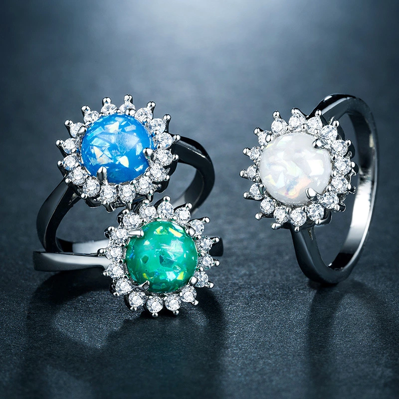 خاتم نسائي جديد من الأحجار الكريمة الأسترالية المقلدة مطلي بالنحاس والذهب الأبيض مرصع بالزركون، بتصميم أوروبي وأمريكية جديدة