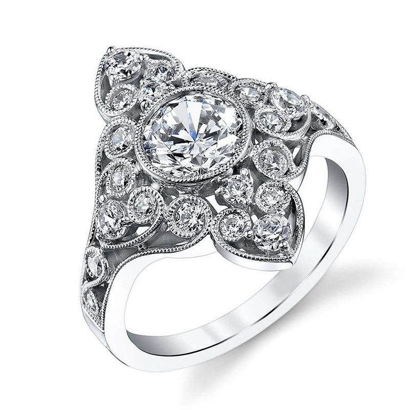خاتم نسائي جديد من الزركون بتصميم أزهار مجوف أوروبي وأمريكي مصنوع من الذهب الحقيقي مع الحفاظ على اللون بالجملة من المصنع