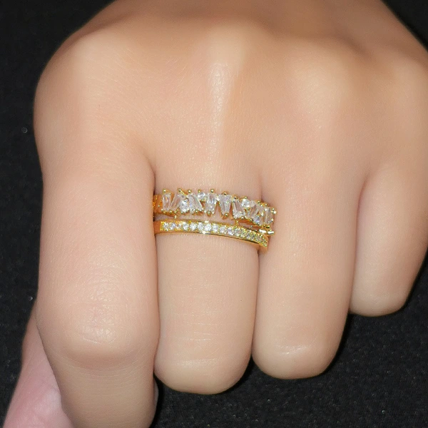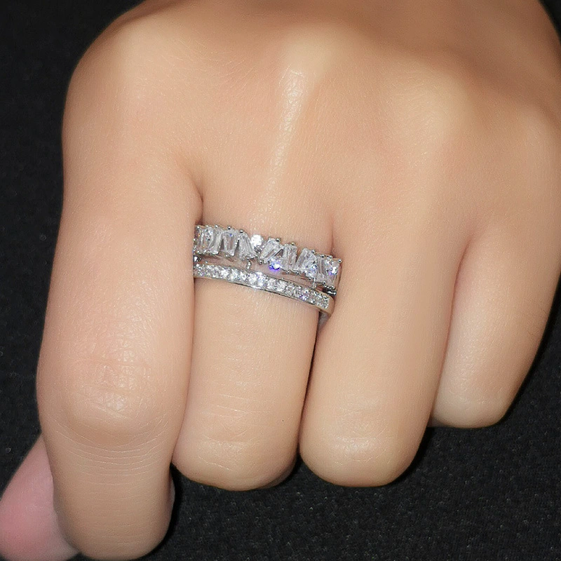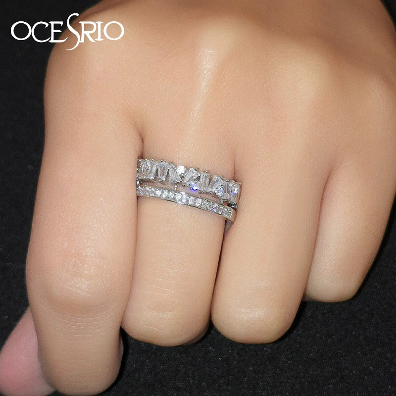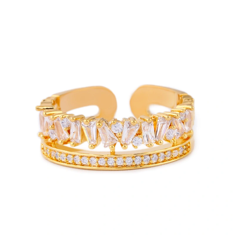 خاتم نسائي جديد من الزركون بتصميم أوروبي وأمريكية مرصع بشخصية فريدة، خاتم ألماس مطلي بالكهرباء مزدوج الفتح rih26