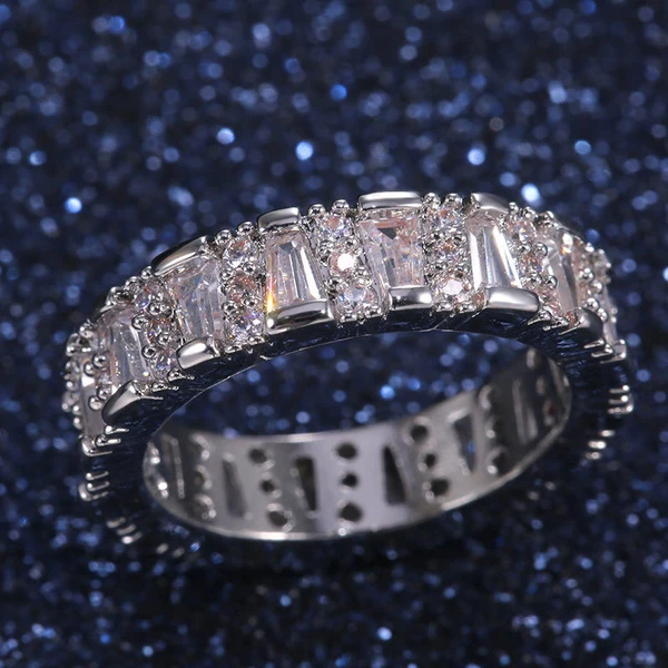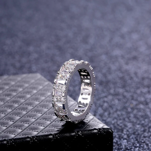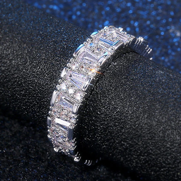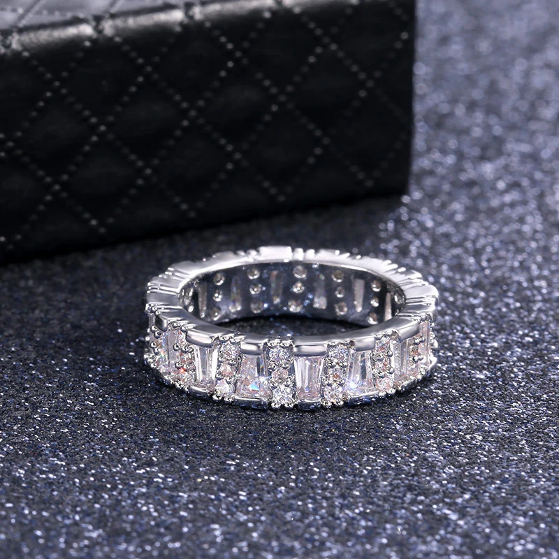 خاتم نسائي جديد من الزركون مرصع بالألماس بالكامل من الدرجة AAA بتصميم أوروبي وأمريكي رائج البيع