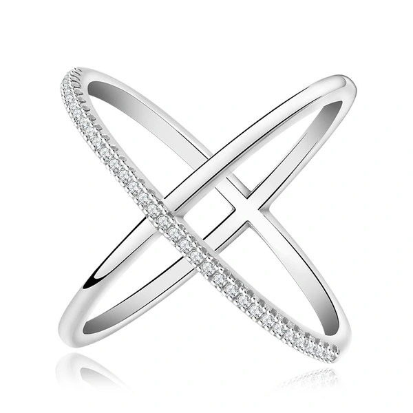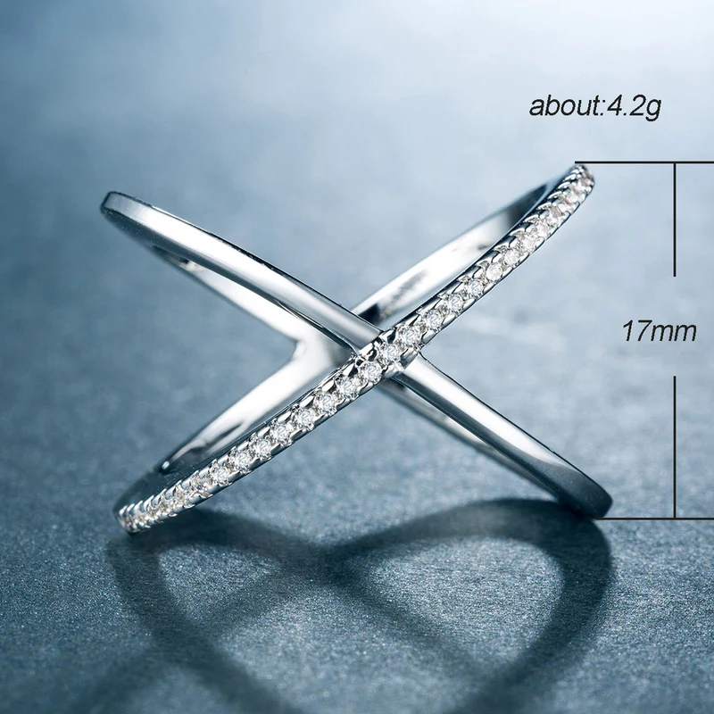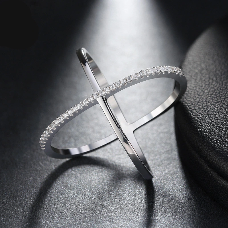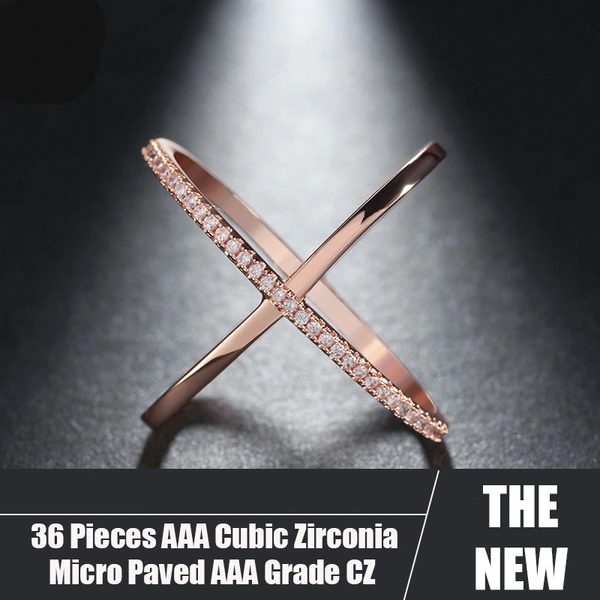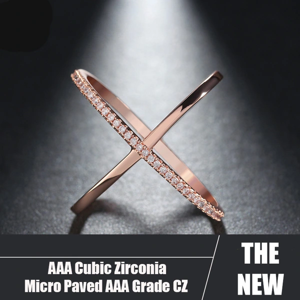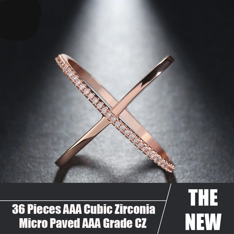 خاتم نسائي جديد من المصنع بالجملة على شكل حرف X بسيط مرصع بالزركون الدقيق مطلي بالنحاس من الذهب الأبيض والوردي والمجوهرات