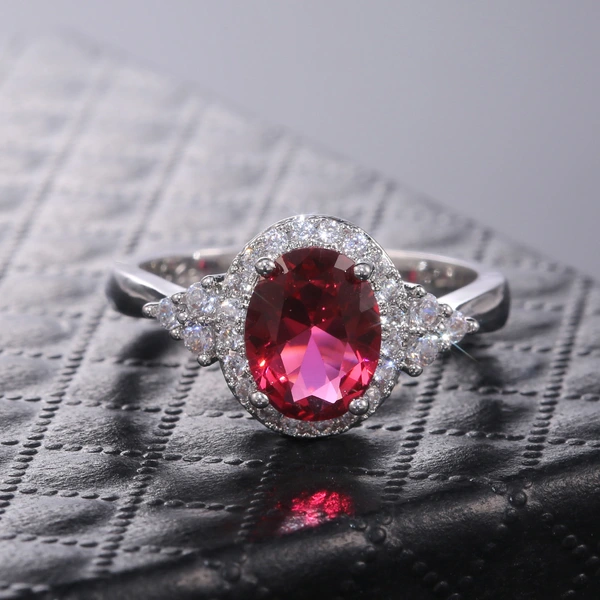 خاتم نسائي جديد موصى به من الأحجار الكريمة الحمراء ذات المزاج الكلاسيكي، خاتم نسائي أوروبي وأمريكي مرصع بالزركون الدقيق