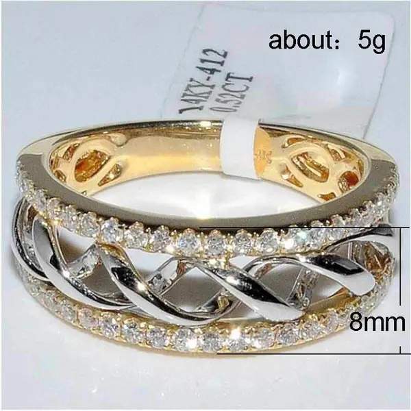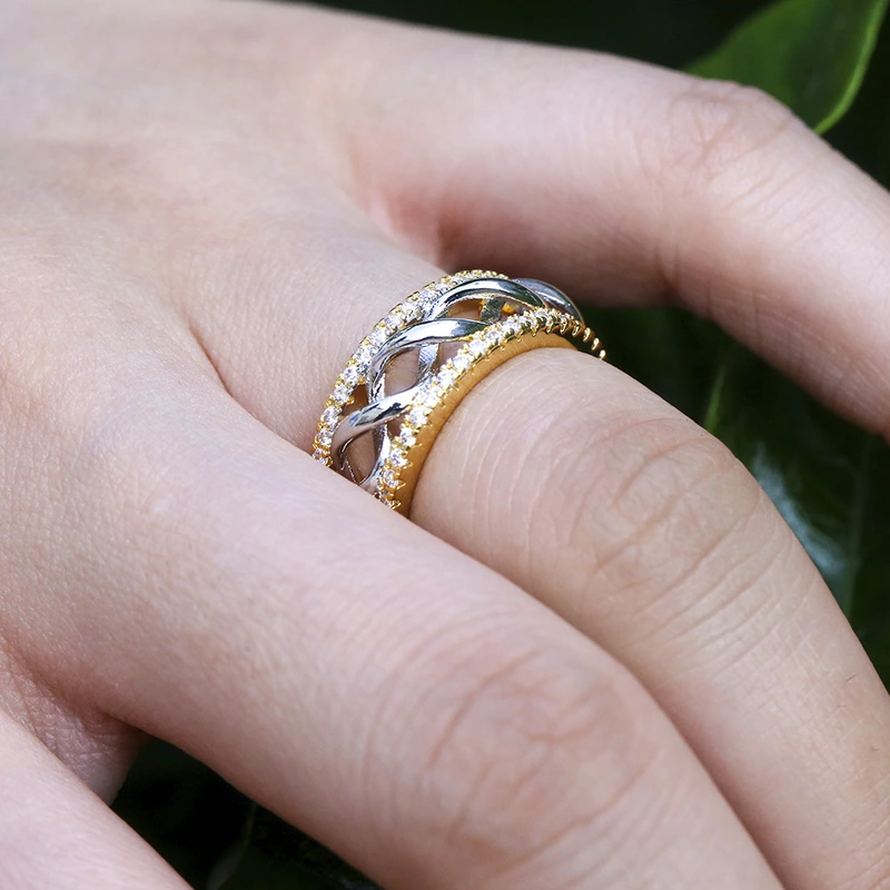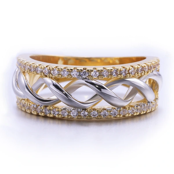 خاتم نسائي ذهبي عصري ومتعدد الاستخدامات الأكثر مبيعًا مطلي بالنحاس مع خاتم ذهبي ثنائي اللون من الزركون خاتم مجوهرات اليد
