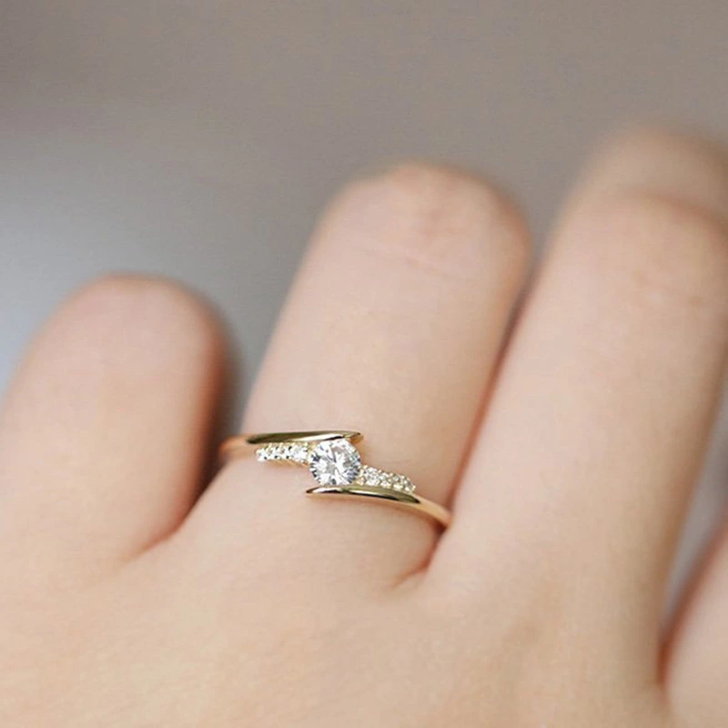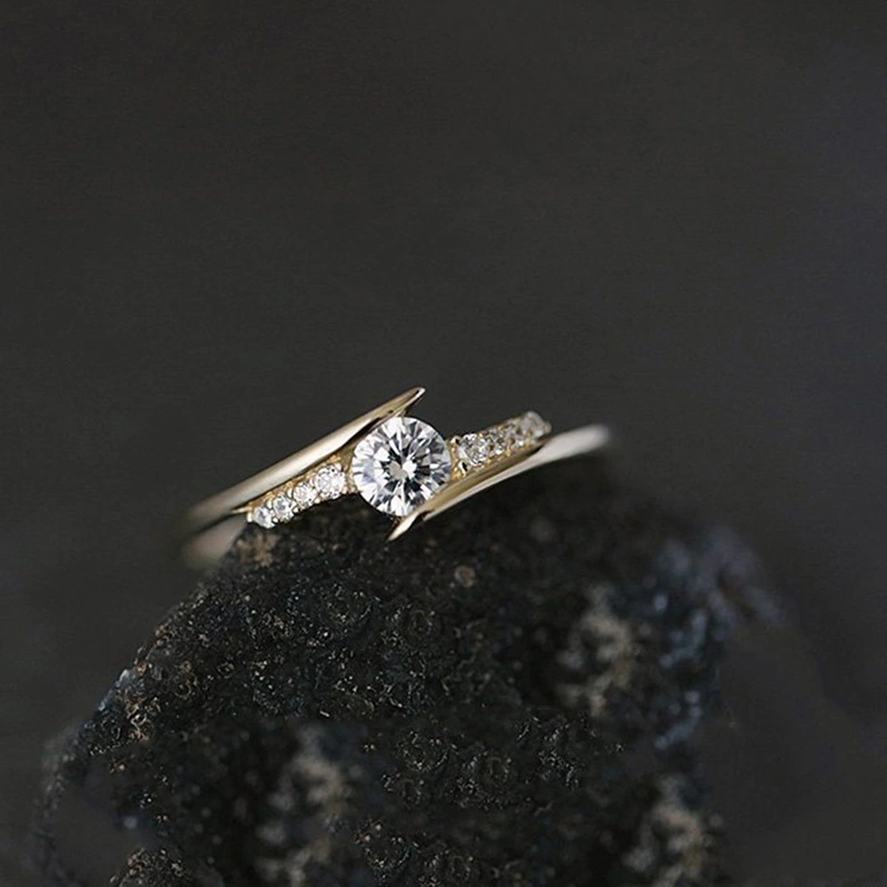 خاتم نسائي رائع على الطراز الياباني والكوري، خاتم زركون ملتوي متقاطع، خاتم إصبع السبابة البسيط، اتجاه المشاهير على الإنترنت