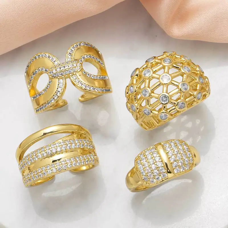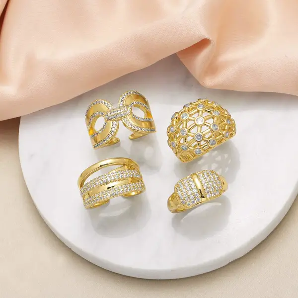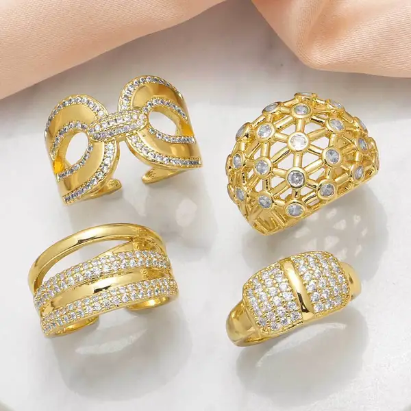 خاتم نسائي عتيق مطلي بالذهب مرصع بالزركون بتصميم غير منتظم على شكل حب أوروبي وأمريكية rih78