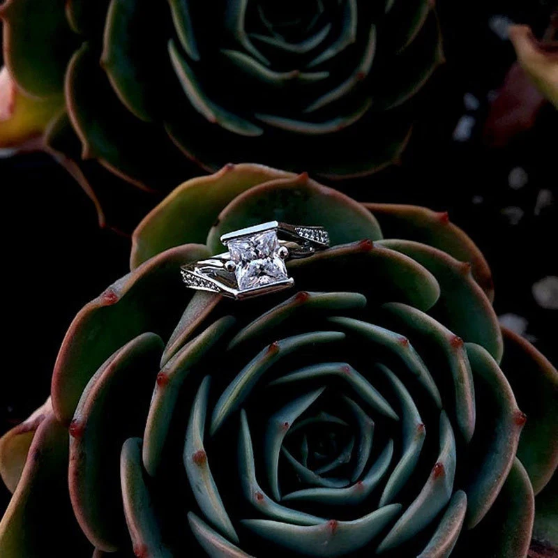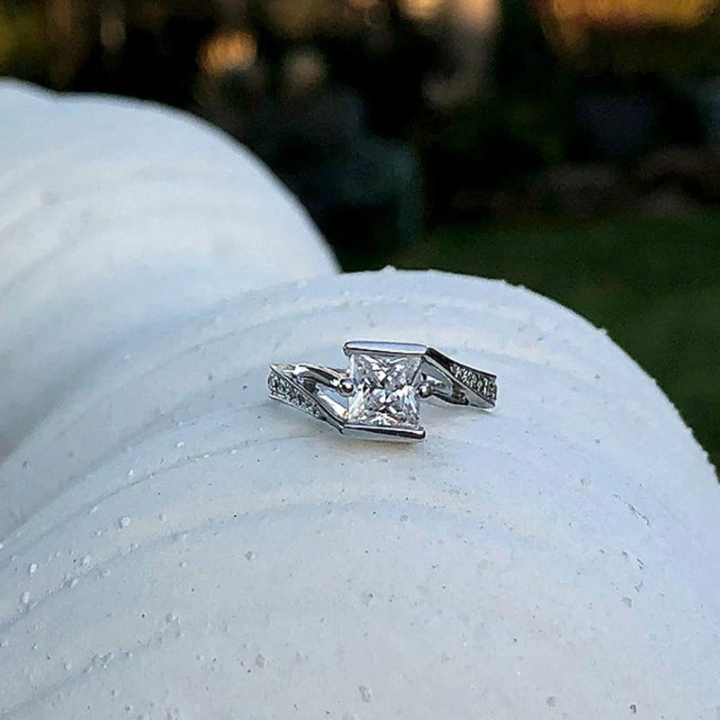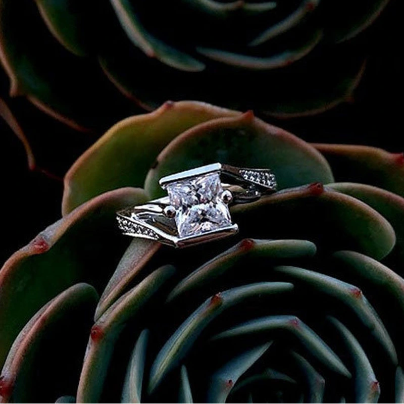 خاتم الأميرة المربع الجديد الأكثر مبيعًا على الطراز الأوروبي والأمريكي المرصع بالزركون مجوهرات نسائية خاتم خطوبة وزواج