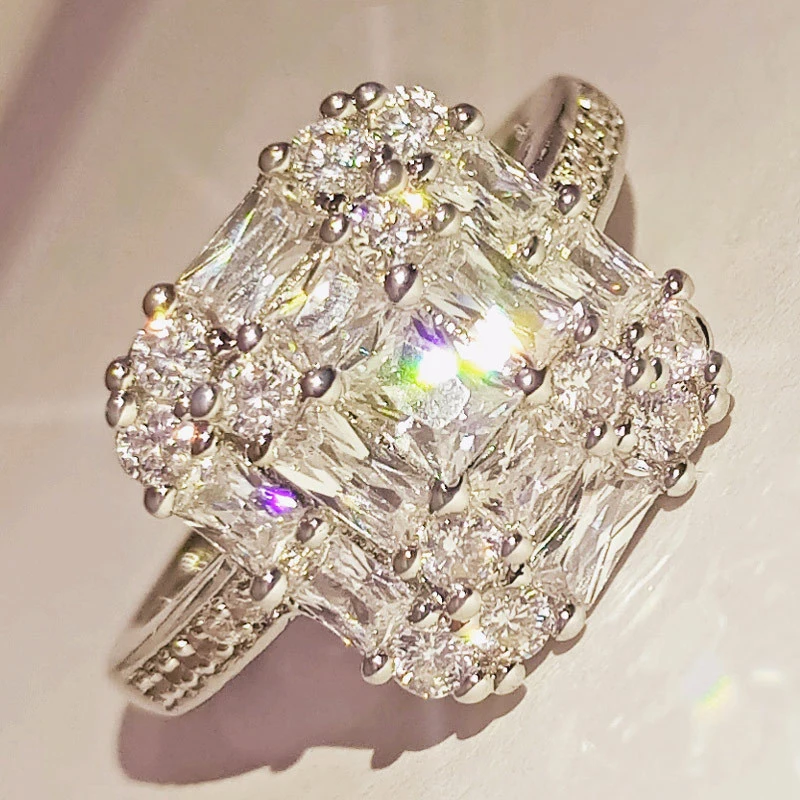 خاتم الأميرة المربع الجديد الأكثر مبيعًا على الطراز الأوروبي والأمريكي المرصع بالزركون مجوهرات نسائية خاتم خطوبة وزواج
