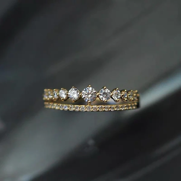 خاتم نسائي على الطراز الياباني من الأجيتي، مرصع بالألماس والزركون، مطلي بالنحاس، خاتم ذهبي أنيق، قطعة واحدة من المجوهرات
