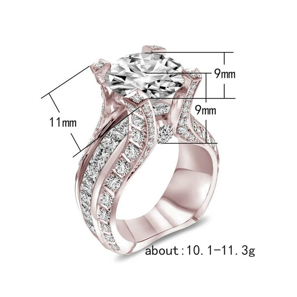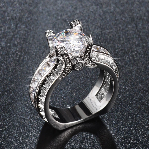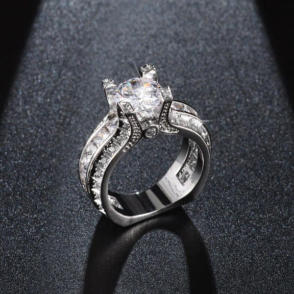 خاتم نسائي فاخر جديد على الطراز الأوروبي والأمريكي مطلي بالبلاتين ومرصع بالزركون خاتم ألماس كبير للبيع بالجملة
