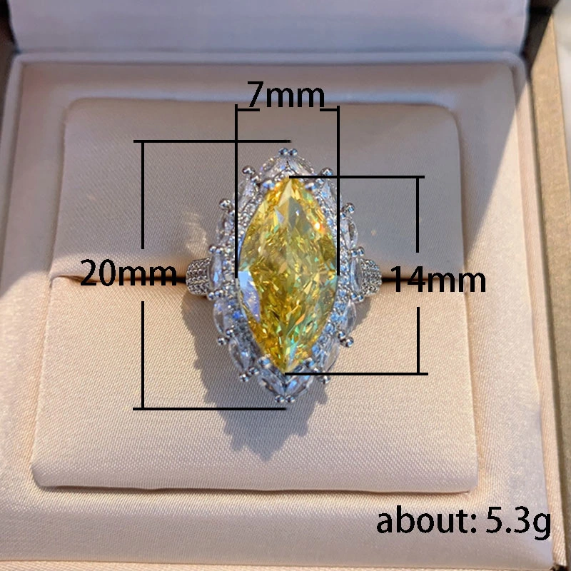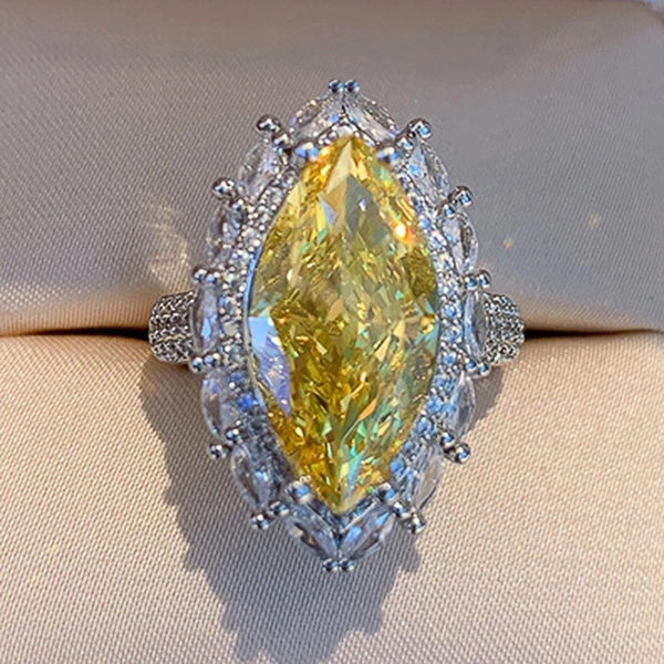 خاتم نسائي فاخر على شكل ماركيز على شكل زيتون، خاتم من الزركون الأصفر الكريستالي على شكل بث مباشر للمشاهير، مجوهرات نحاسية رائعة
