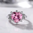 خاتم نسائي فاخر من الزركون الوردي المقلد على شكل قلب بتصميم أوروبي وأمريكي جديد، خاتم زفاف فاخر