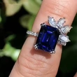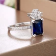 خاتم نسائي فاخر موصى به بتصميم جديد للبيع الساخن مرصع بالألماس الأزرق والزركون والنحاس مطلي بالذهب الأبيض والمجوهرات