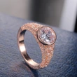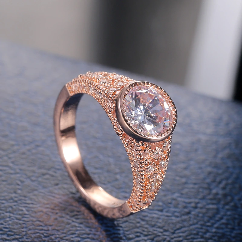 خاتم نسائي كلاسيكي جديد من الذهب الوردي الكبير مرصع بالزركون والألماس المقلد خاتم مجوهرات إكسسوارات