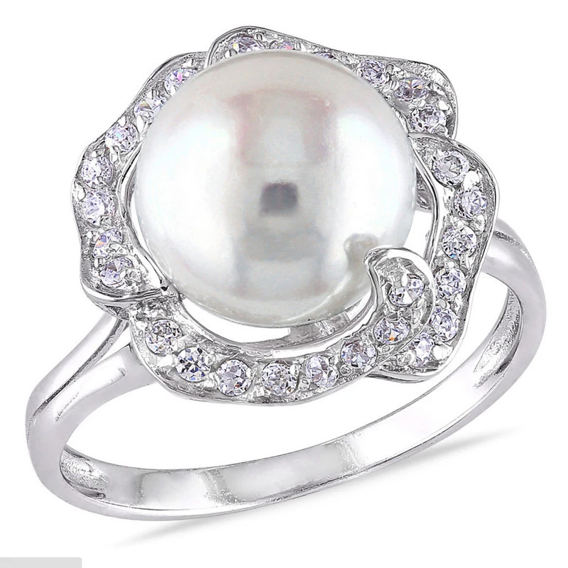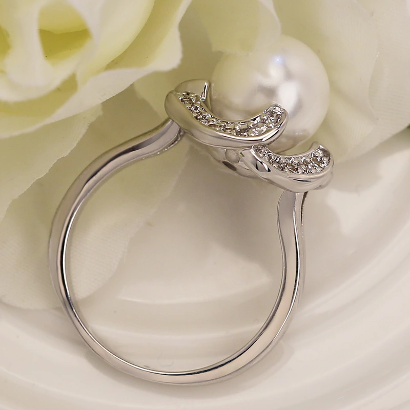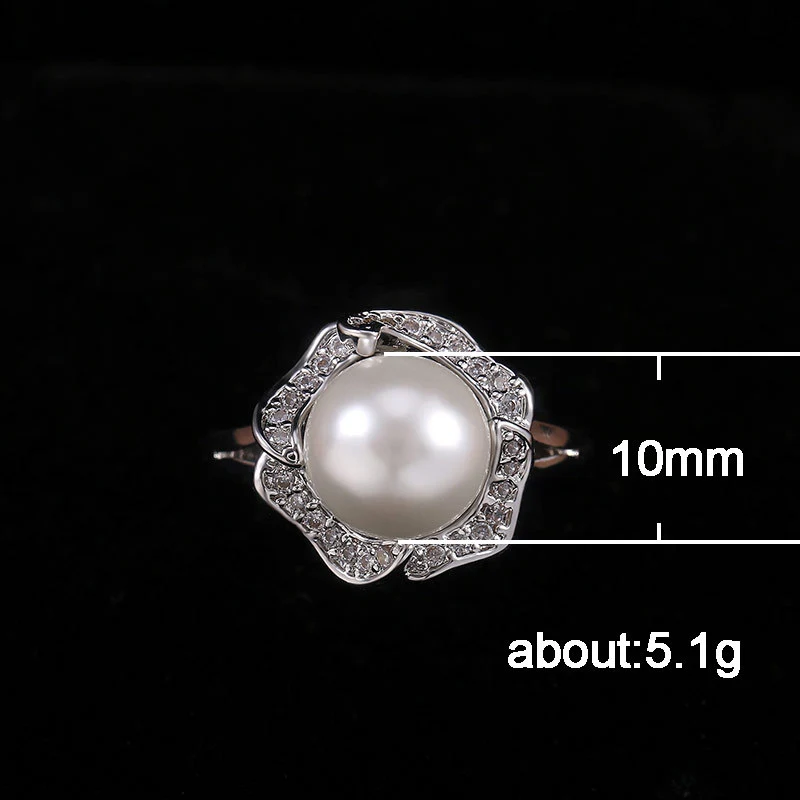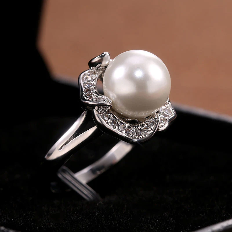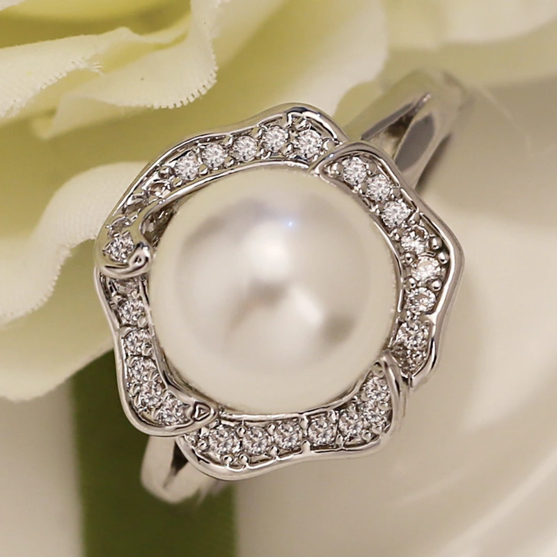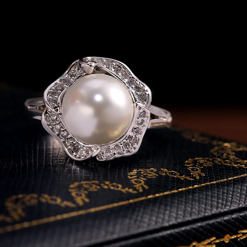 خاتم نسائي كلاسيكي جديد من الزركونيوم الكامل مرصع بالألماس واللؤلؤ المقلد على الطراز الأوروبي والأمريكي مجوهرات يدوية