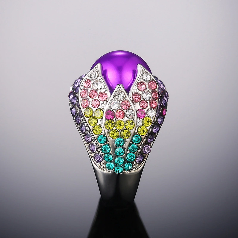 خاتم نسائي مبالغ فيه بتصميم عتيق الأكثر مبيعًا على شكل بتلات ألماس كامل مرصع بالألماس الملون