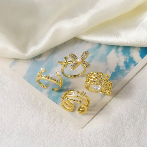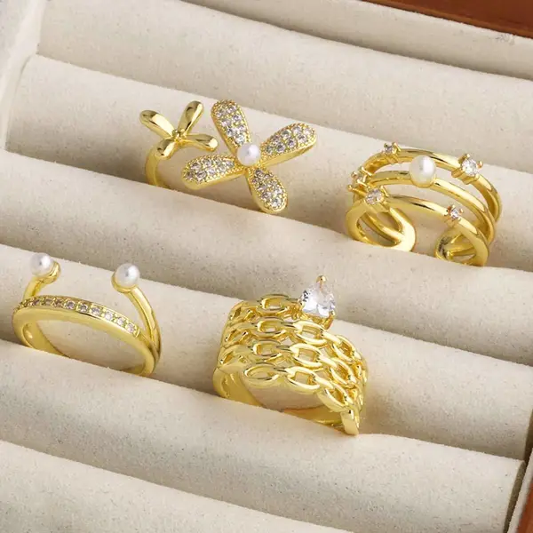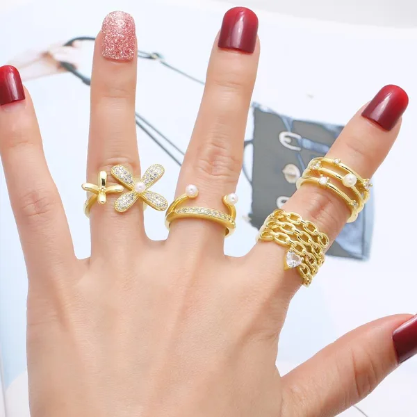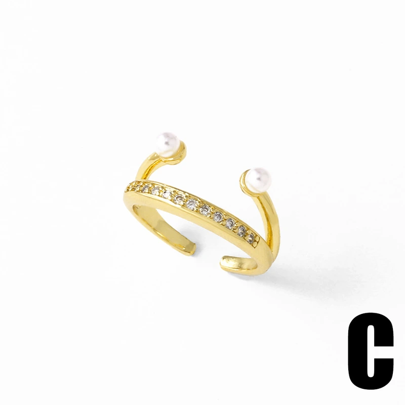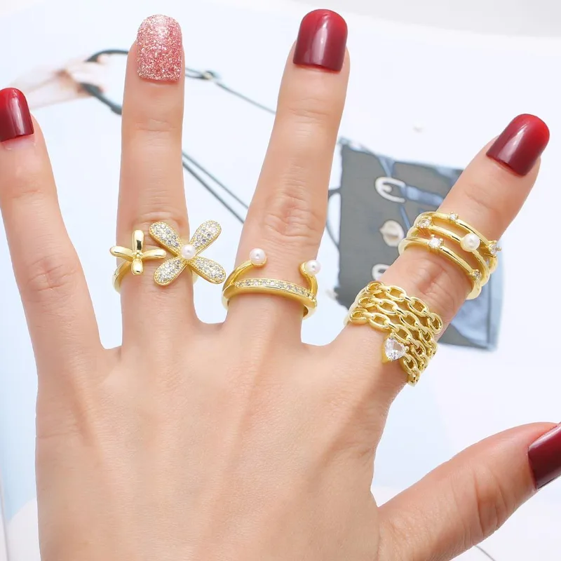 خاتم نسائي مزدوج الطبقات من اللؤلؤ الزهري الأكثر مبيعًا في أوروبا والولايات المتحدة مطلي بالنحاس عيار 18 قيراطًا من الذهب الجديد ris31