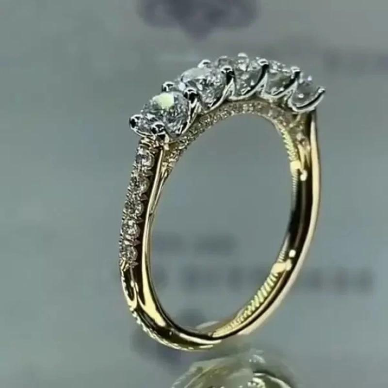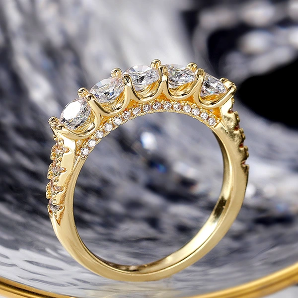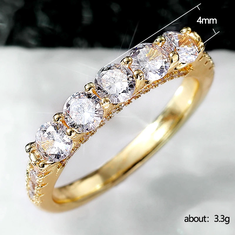 خاتم نسائي مطلي بالذهب مرصع بالألماس من صف واحد مرصع بالزركون خاتم نسائي فاخر خفيف للاحتفال بالذكرى السنوية
