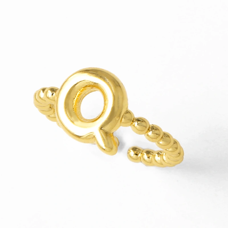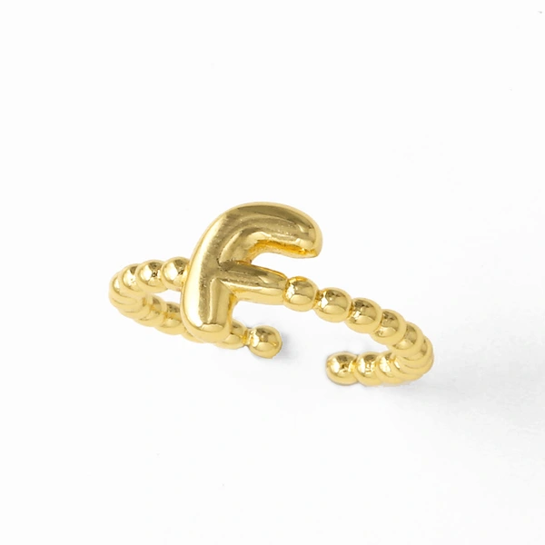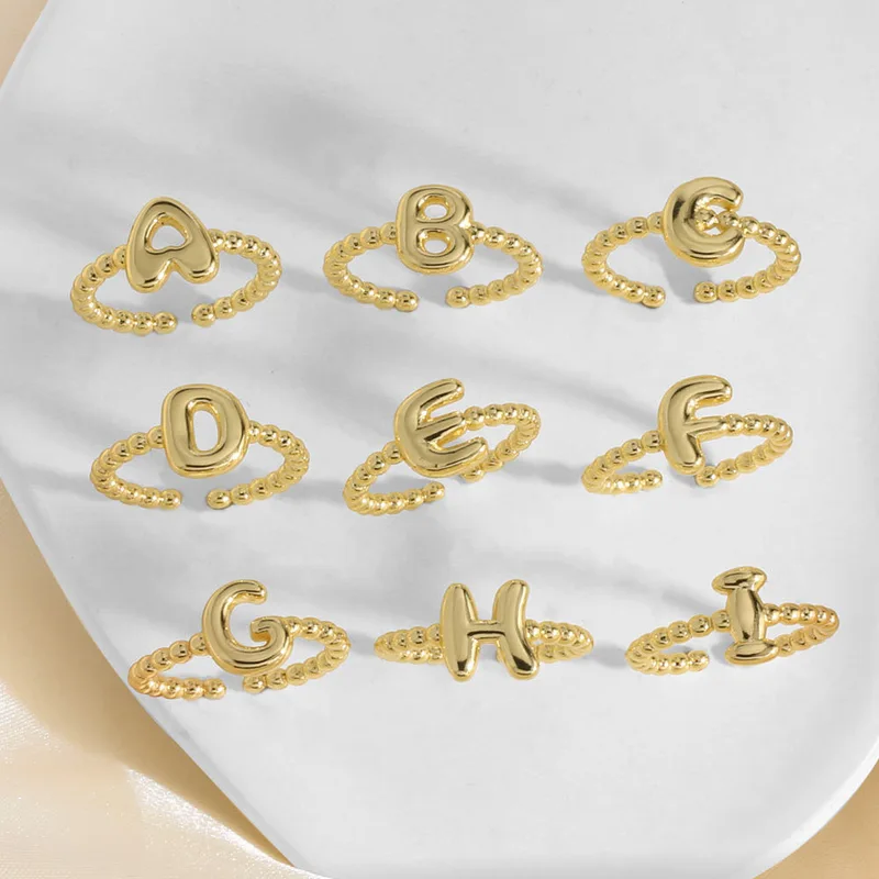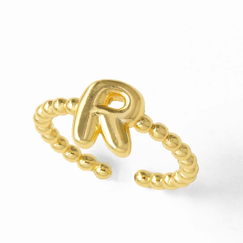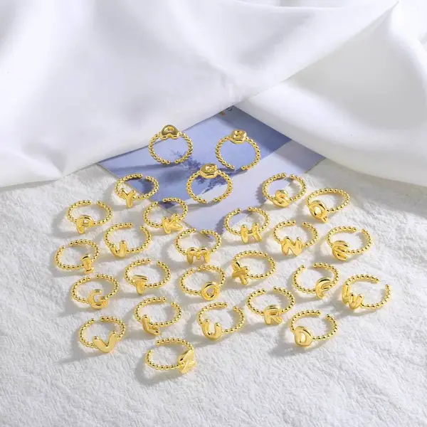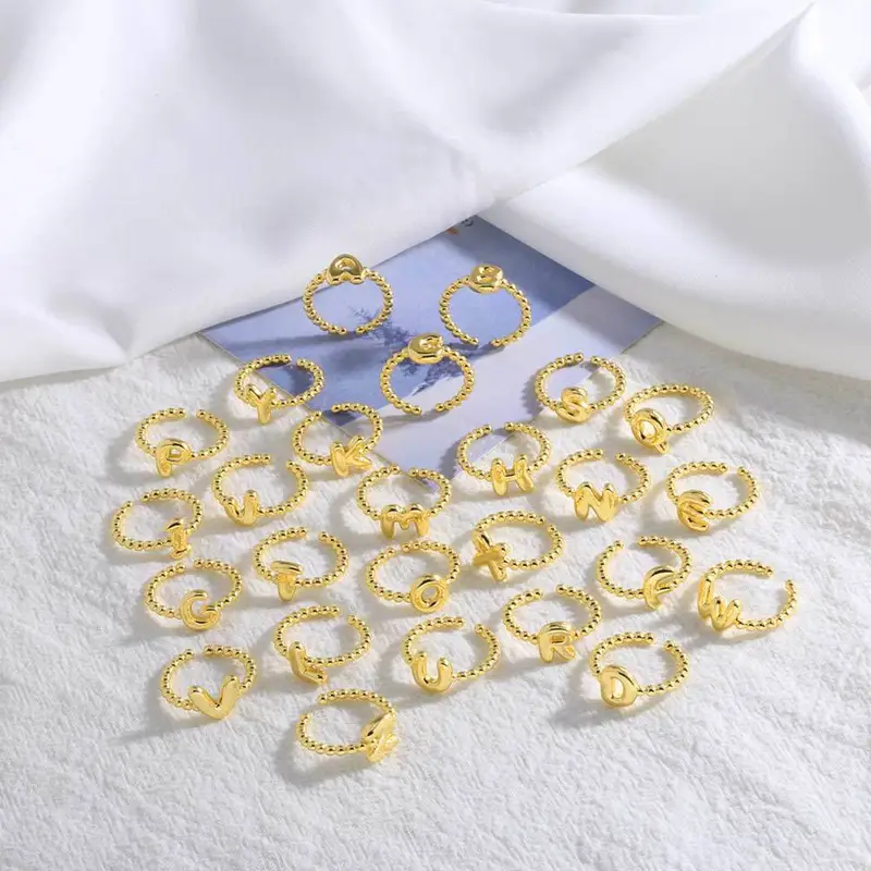 خاتم نسائي مطلي بالذهب مفتوح من 26 حرفًا إنجليزيًا ناعمًا كالمجوهرات rir42