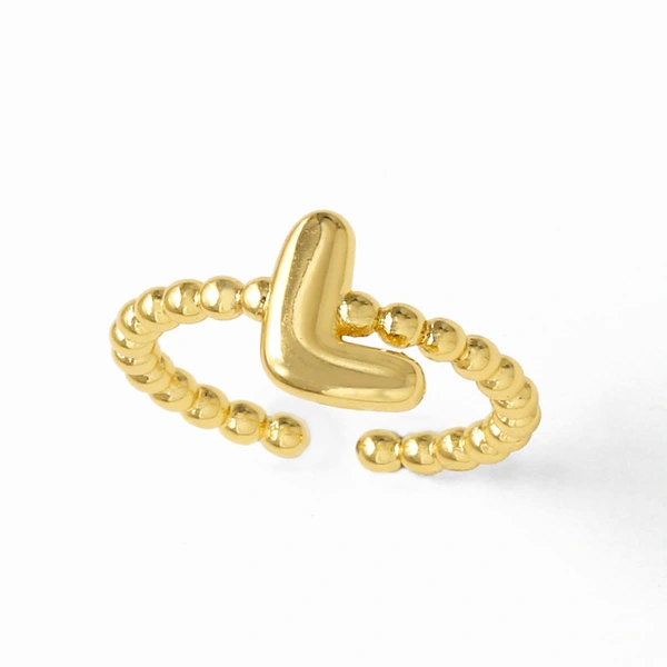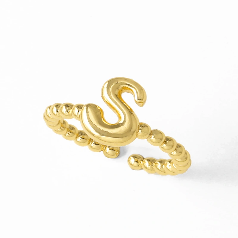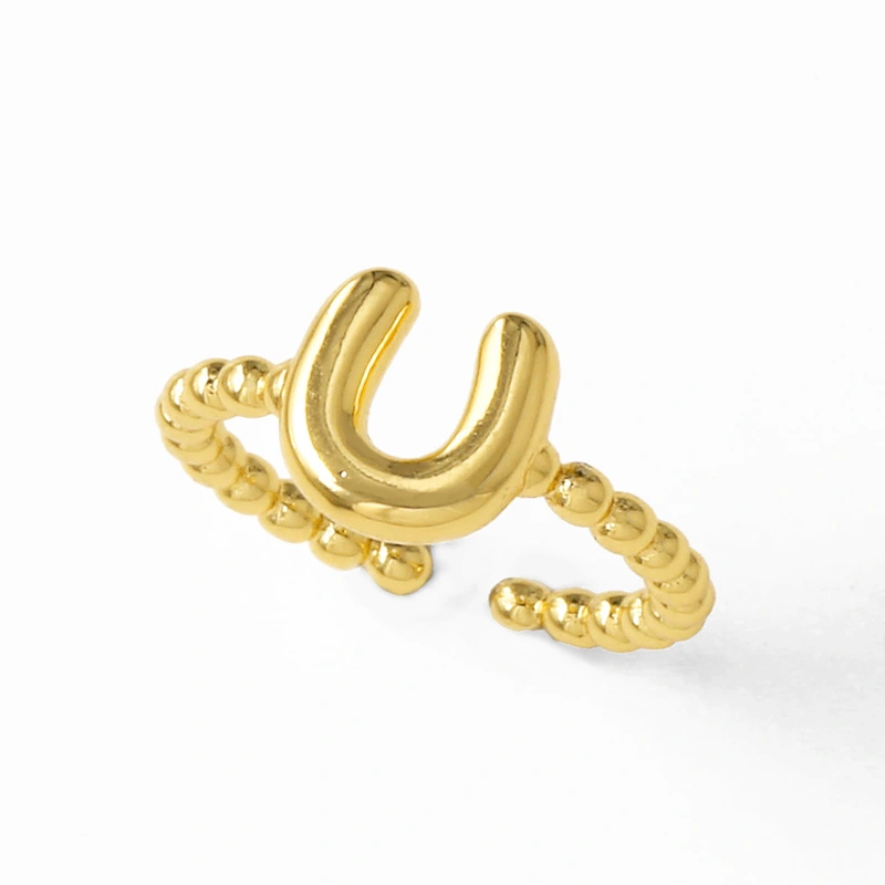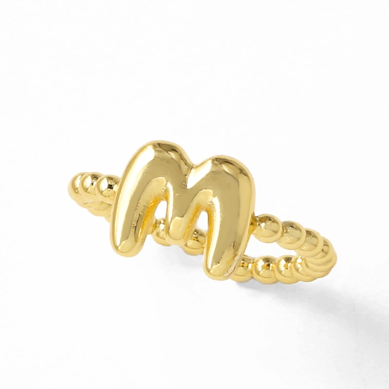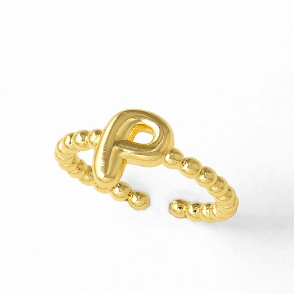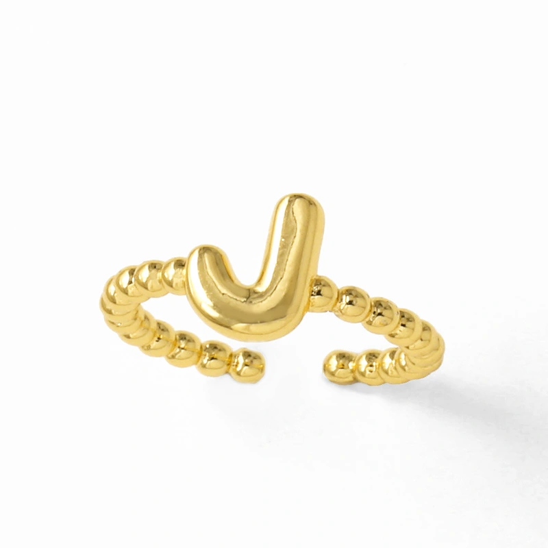 خاتم نسائي مطلي بالذهب مفتوح من 26 حرفًا إنجليزيًا ناعمًا كالمجوهرات rir42