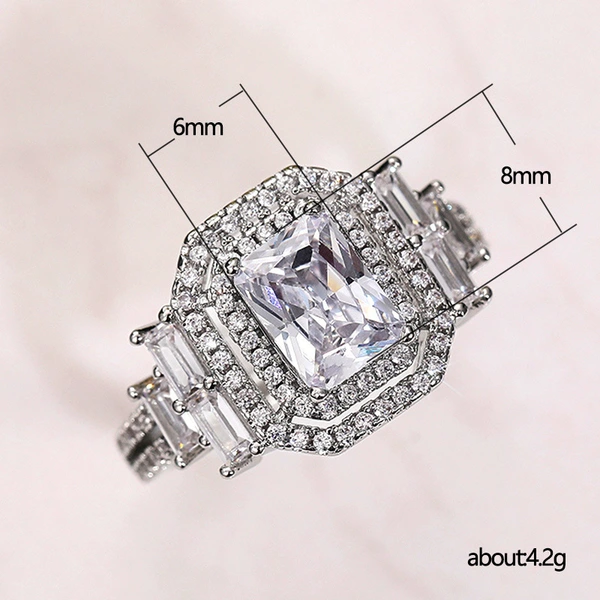 خاتم الأميرة المربع الجديد الأكثر مبيعًا على الطراز الأوروبي والأمريكي المرصع بالزركون مجوهرات نسائية خاتم خطوبة وزواج