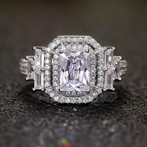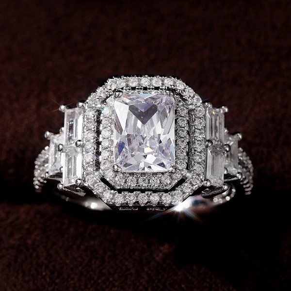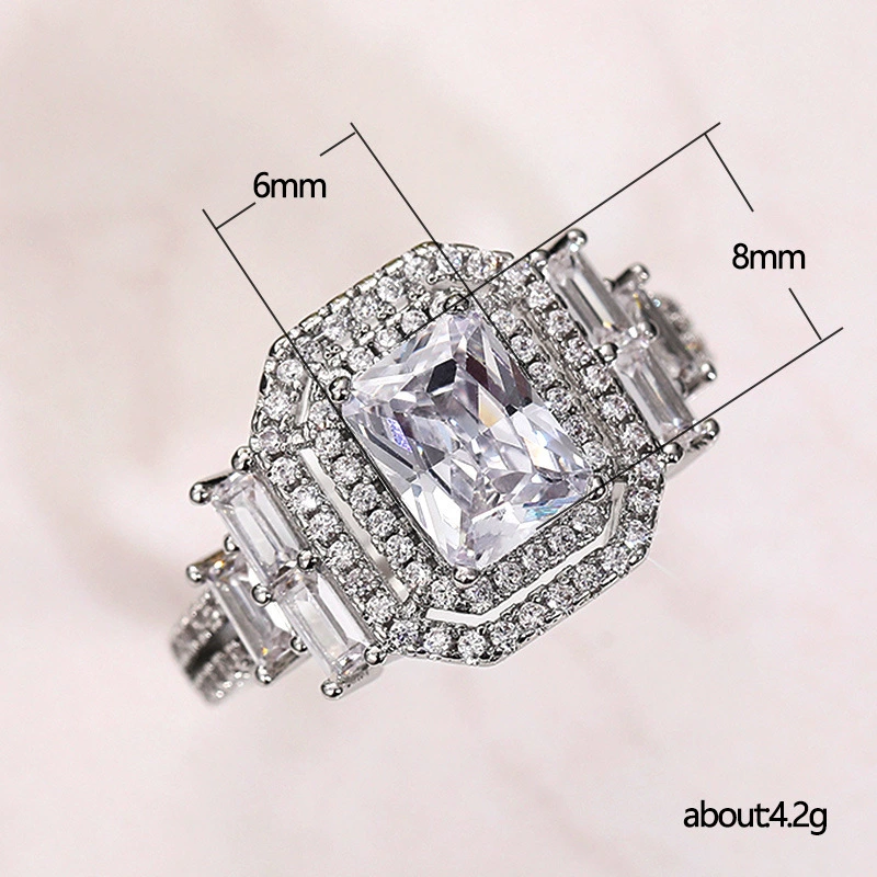 خاتم نسائي مطلي بالكهرباء من الزركون المربع الماسي الكامل الرائع على الطراز الأوروبي والأمريكي للبيع بالجملة من المصنع
