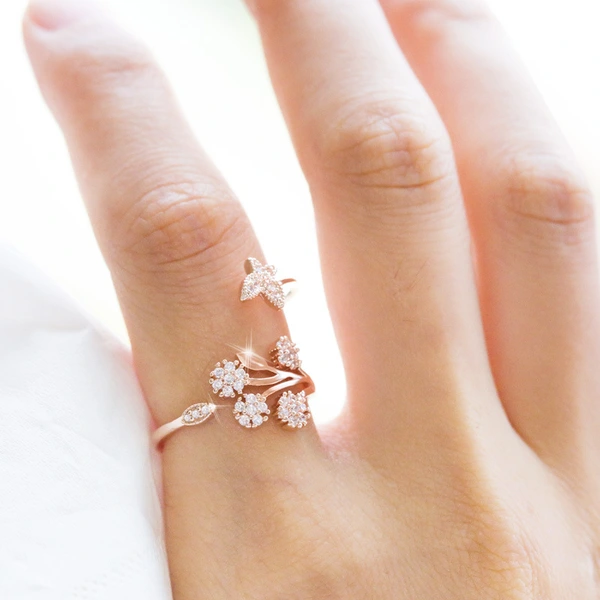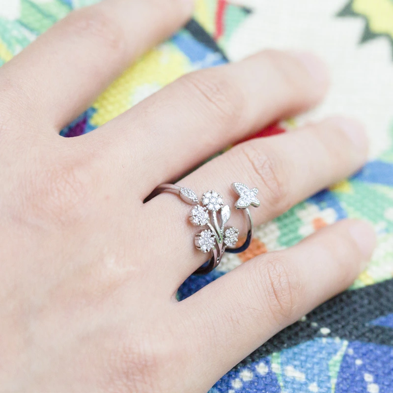 خاتم نسائي مفتوح جديد على شكل فراشة مرصعة بالميكروفون من أوروبا والولايات المتحدة شائع الاستخدام، خاتم إصبع السبابة متعدد الاستخدامات على شكل زهرة الهندباء