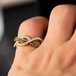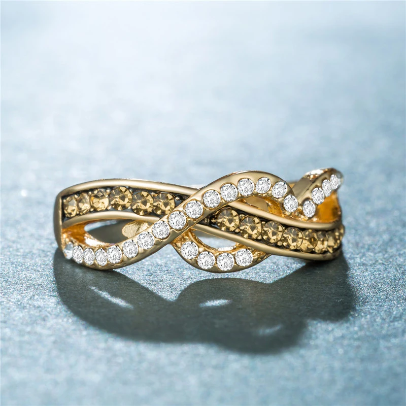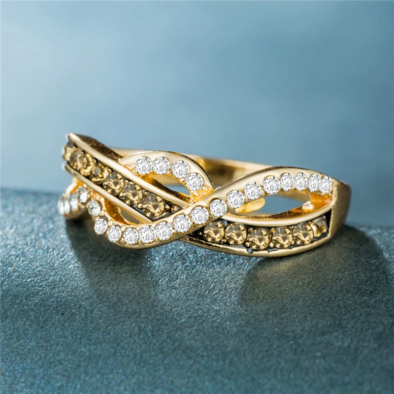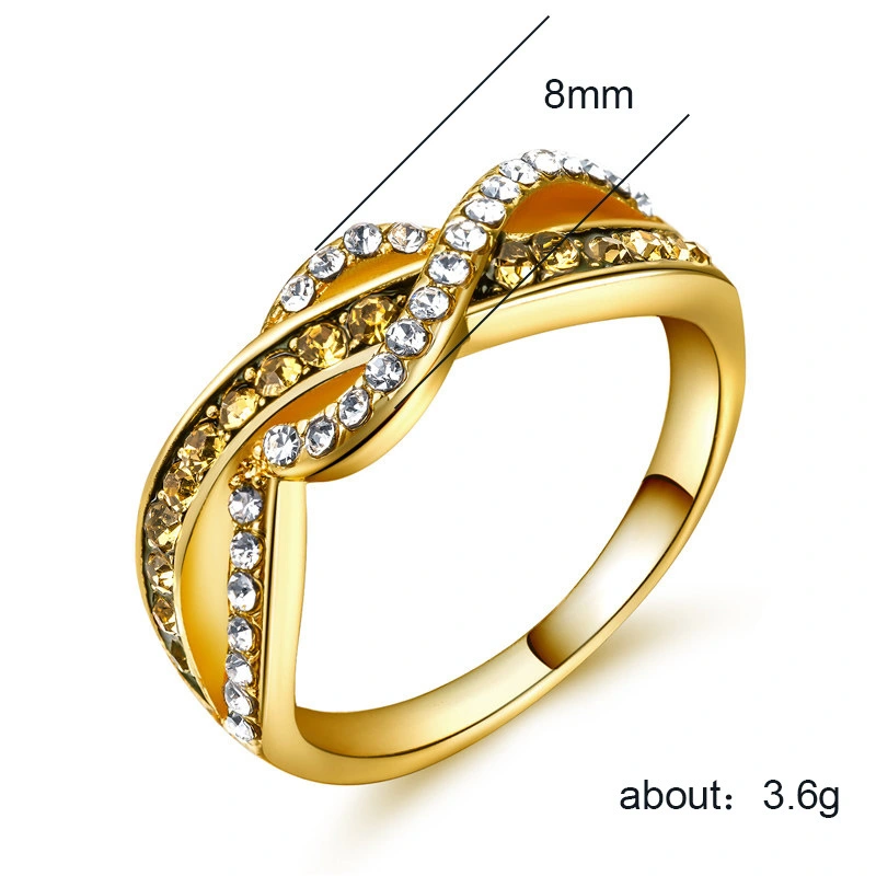 خاتم نسائي ملفوف بخط ريترو جديد على الطراز الأوروبي والأمريكي مطلي بالسبائك من الذهب عيار 14 قيراطًا مرصع بالزركون الكريستالي