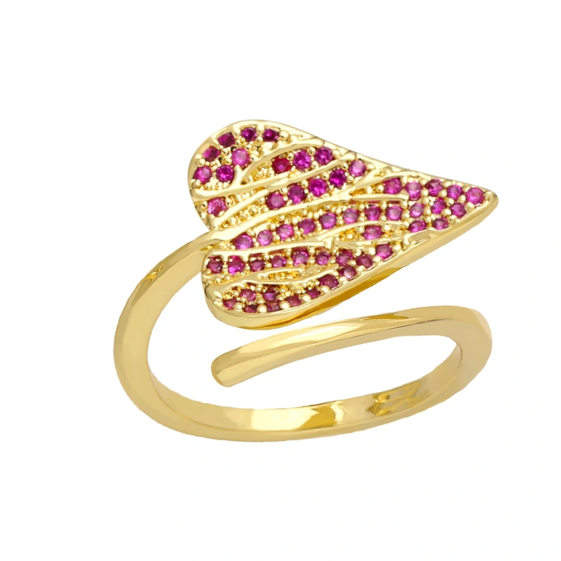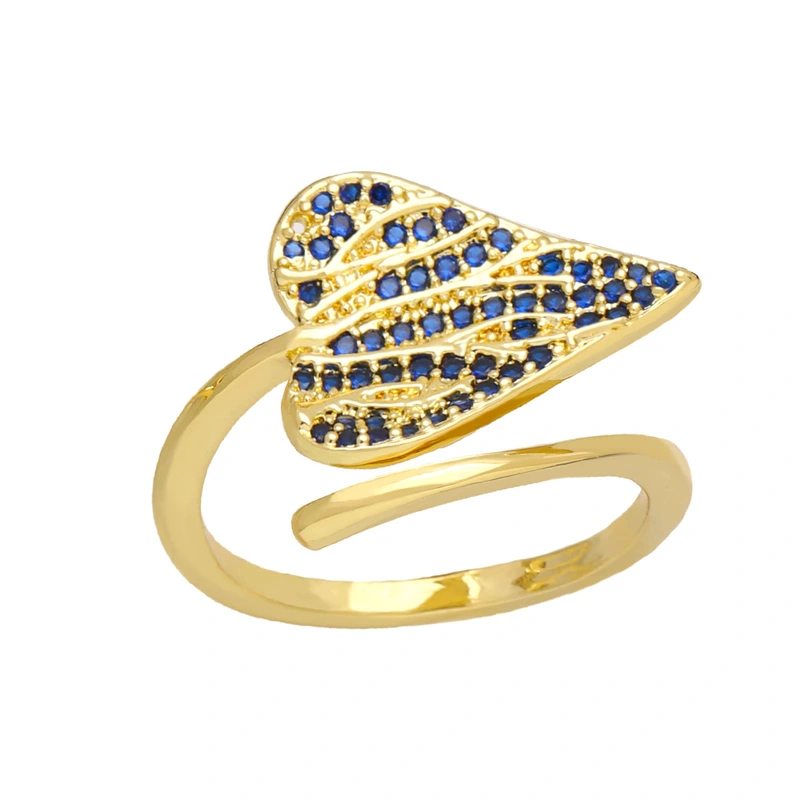 خاتم نسائي من الألماس بالكامل بتصميم أوراق شجر على شكل قلب، بتصميم أوروبي وأمريكي، خاتم إصبع السبابة بفتحة على شكل ورقة شجر، rij48