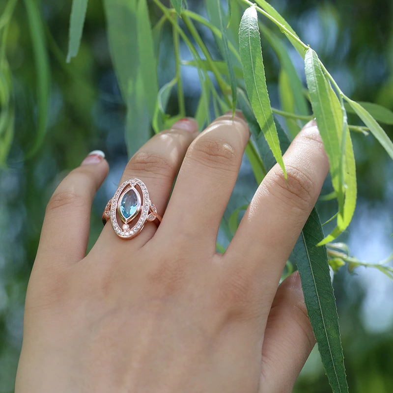 خاتم بتصميم أوروبي وأمريكي فاخر، خاتم عصري من الزركون على شكل عين الحصان، خاتم إصبع السبابة بتصميم مجوف متعدد الطبقات