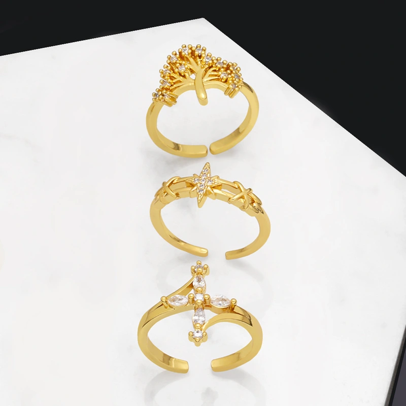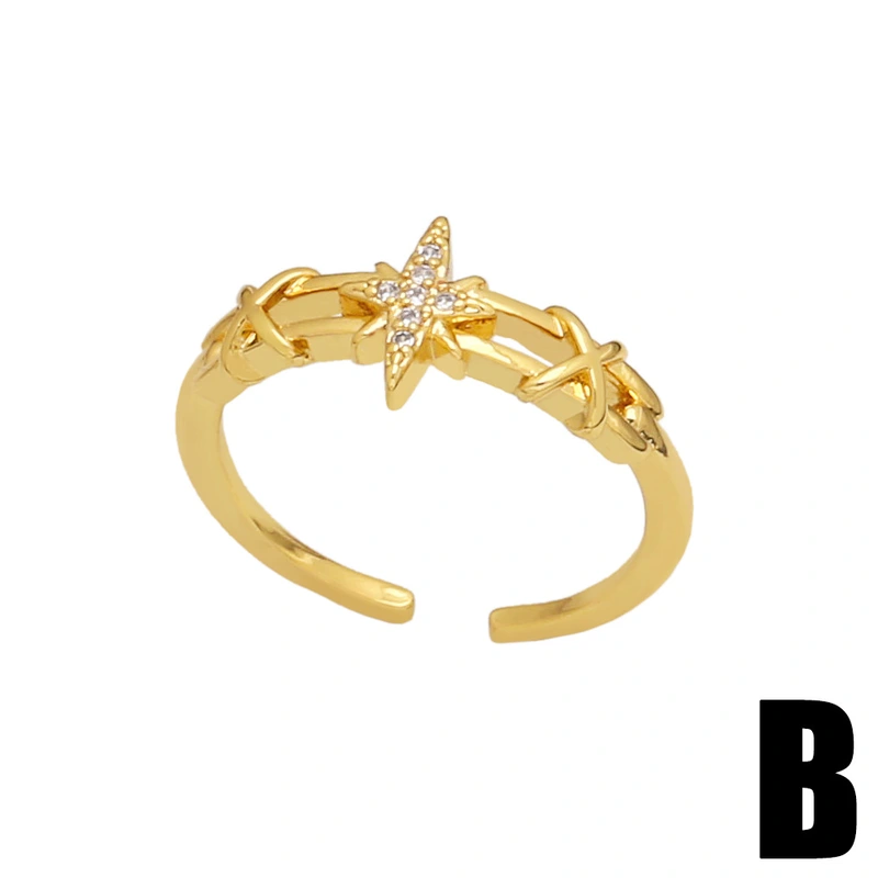 خاتم نسائي من الزركون بتصميم أوروبي وأمريكي، مزين بنجمة وقمر وصليب أحمر، معروض للبيع بسعر مخفض (riq27)
