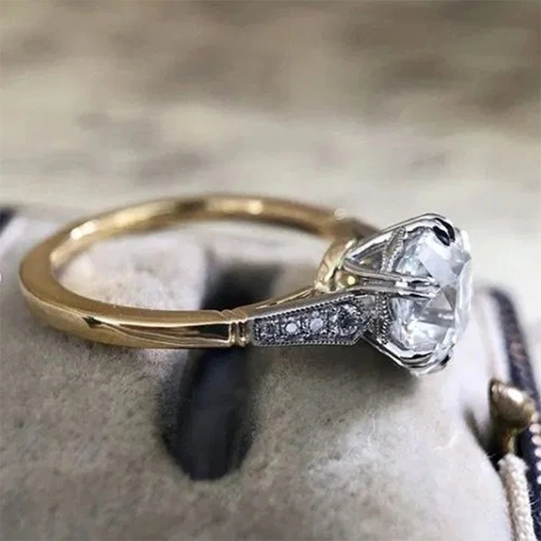خاتم كلاسيكي مرصع بأحجار الزركون المقلد بأربعة مخالب للنساء، خاتم ذراع ملتوي مزدوج اللون، خاتم خطوبة وزواج للنساء