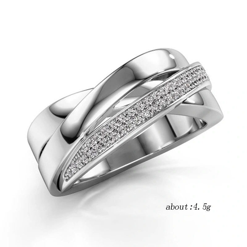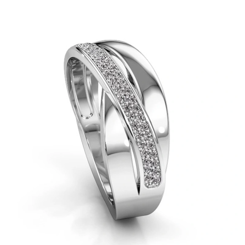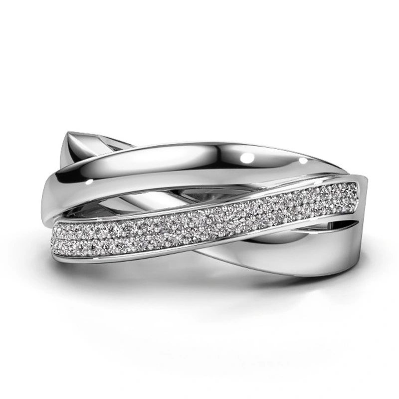 خاتم نسائي من الزركون مرصع بالموجة المتقاطعة بتصميم أوروبي وأمريكية جديد للبيع بالجملة
