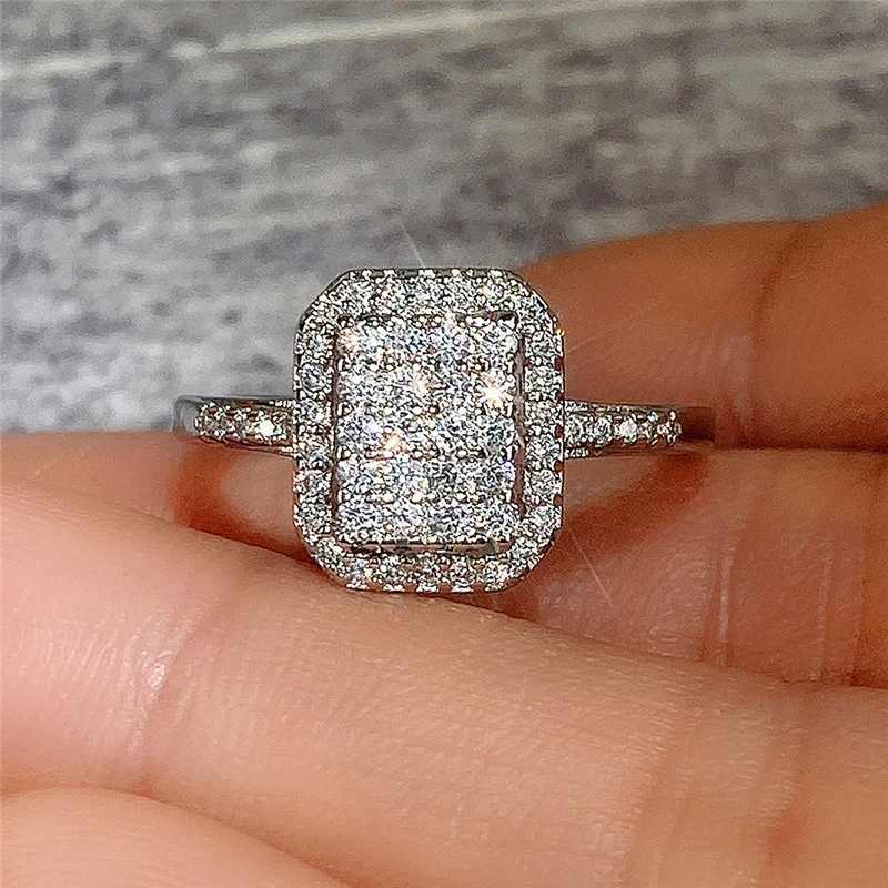 خاتم الأميرة المربع الجديد الأكثر مبيعًا على الطراز الأوروبي والأمريكي المرصع بالزركون مجوهرات نسائية خاتم خطوبة وزواج