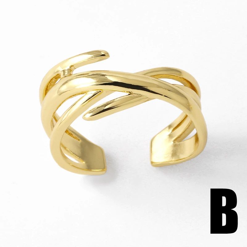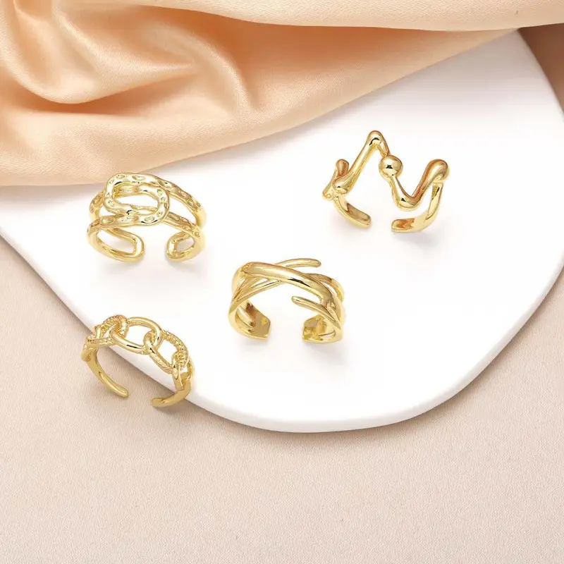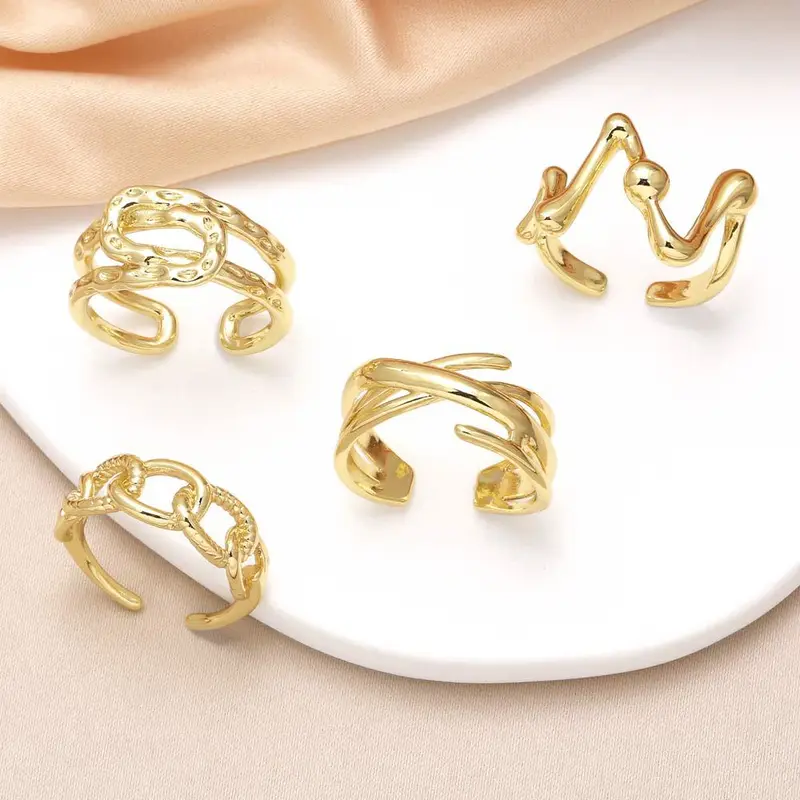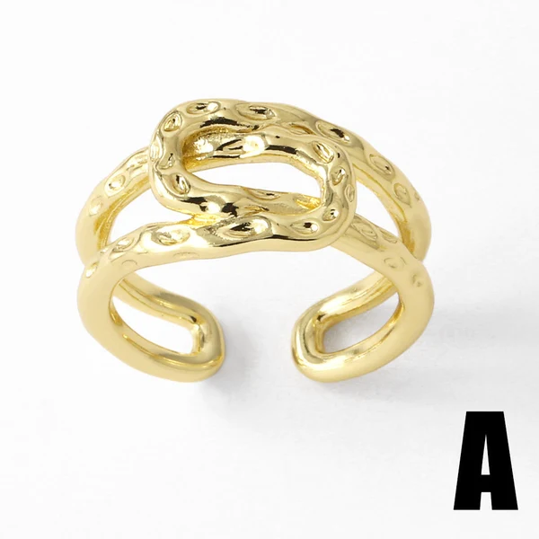 خاتم نسائي ناعم غير منتظم مطلي بالنحاس عيار 18 قيراطًا من المجوهرات الأكثر مبيعًا في أوروبا والولايات المتحدة خاتم مزدوج الطبقات من الذهب عيار 18 قيراطًا rij74