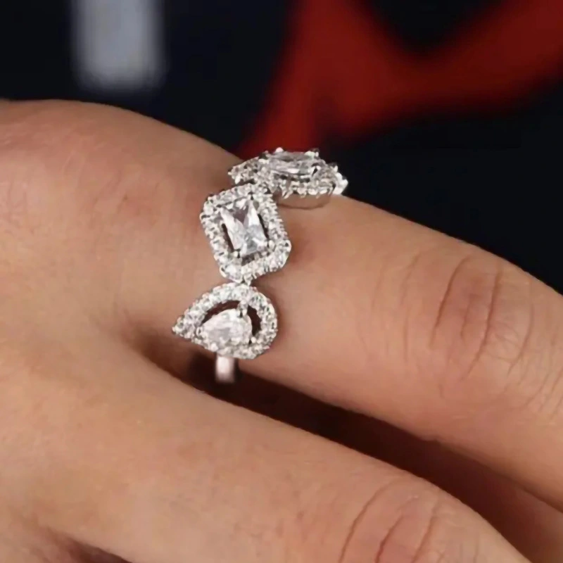 خاتم صغير فاخر فرنسي رائج البيع على شكل قطرة ماء على شكل زهرة خاصة خاتم إصبع السبابة للأميرة