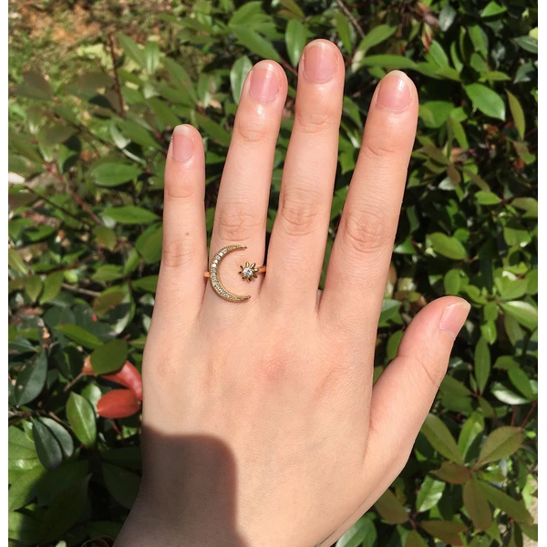 خاتم هلال جديد للبيع الساخن مطلي بالنحاس الأوروبي والأمريكي باللون الذهبي الوردي خاتم خطوبة مفتوح مبالغ فيه