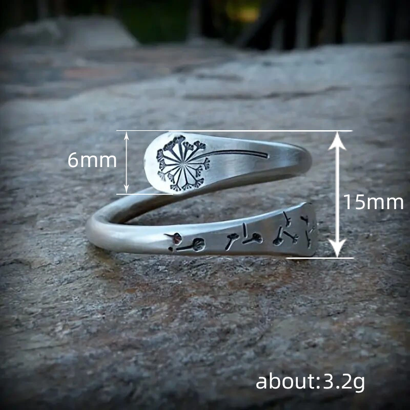 خاتم هندباء عتيق على الطراز البوهيمي بتصميم شخصية مجوهرات يدوية نسائية خاتم مفتوح قابل للتعديل