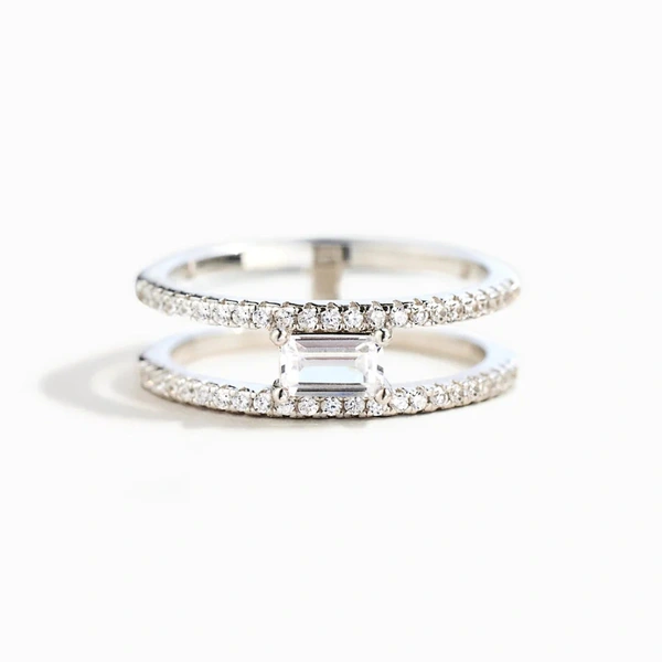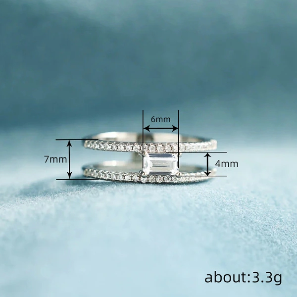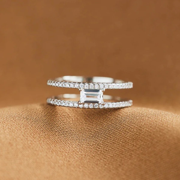 خاتم هندسي بسيط للنساء، مجوهرات بسيطة مربعة مزدوجة الطبقات، نمط شائع وشعبي للارتداء اليومي