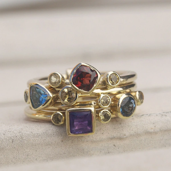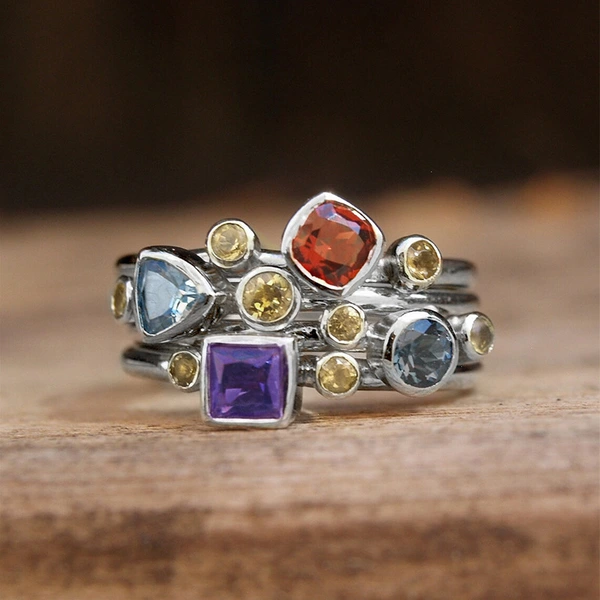 خاتم هندسي جديد وجذاب للبيع على الطراز الأوروبي والأمريكي متعدد الألوان خاتم فريد من نوعه للنساء