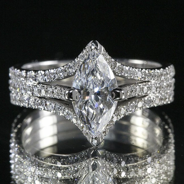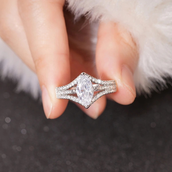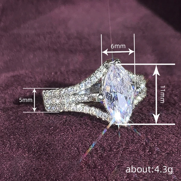 خاتم زفاف جديد من الزركون اللامع على شكل عين حصان إبداعي مجوهرات حية للنساء