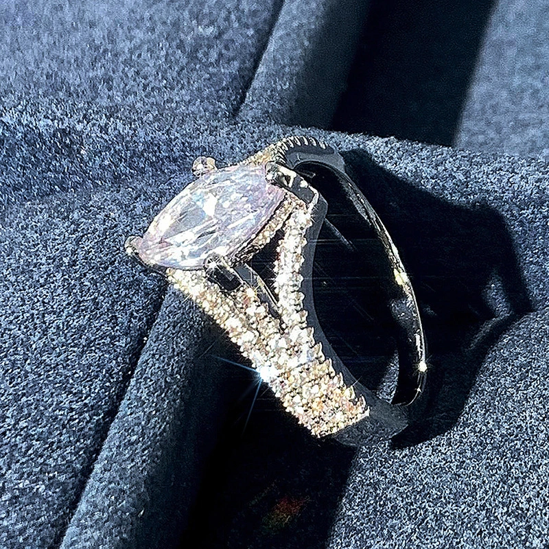خاتم الأميرة المربع الجديد الأكثر مبيعًا على الطراز الأوروبي والأمريكي المرصع بالزركون مجوهرات نسائية خاتم خطوبة وزواج