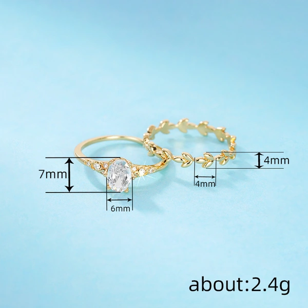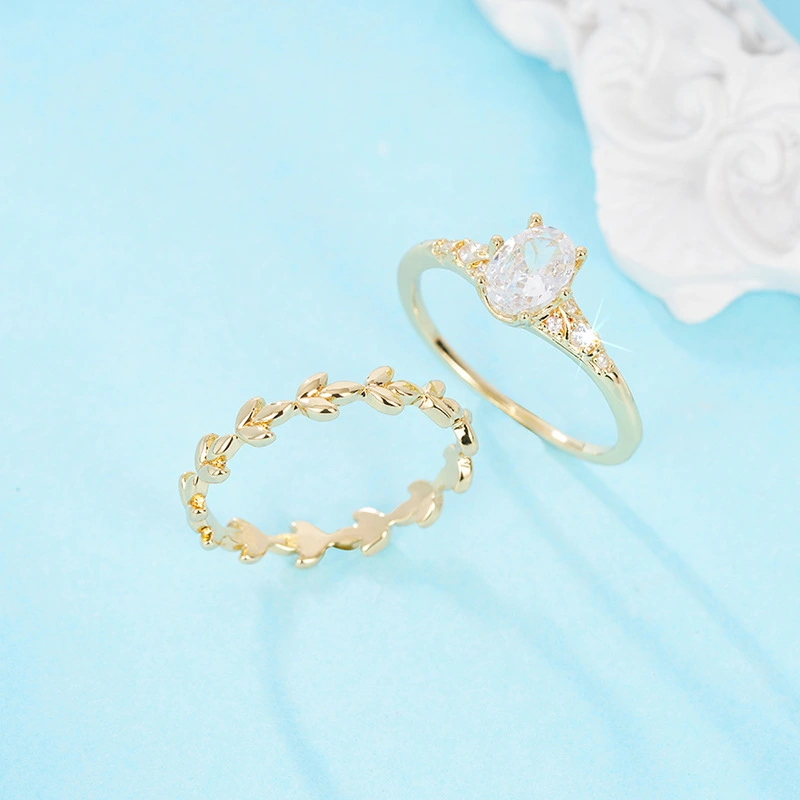 خاتم هندسي على شكل ورقة قمح للنساء، خاتم عصري من قطعتين، خاتم خطوبة وزفاف