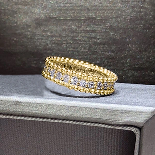 خاتم هندسي كامل من الألماس بحافة قفل حية للنساء، مزاج لامع على الطراز الفرنسي، مجوهرات متعددة الاستخدامات، إكسسوارات يومية أنيقة