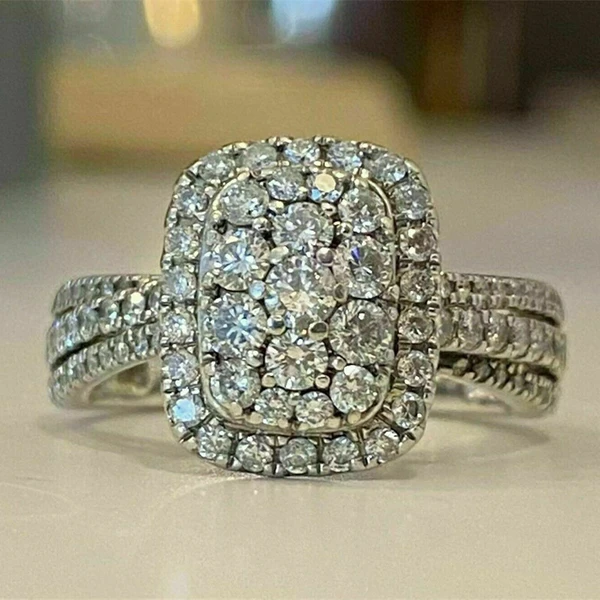 خاتم الأميرة المربع الجديد الأكثر مبيعًا على الطراز الأوروبي والأمريكي المرصع بالزركون مجوهرات نسائية خاتم خطوبة وزواج