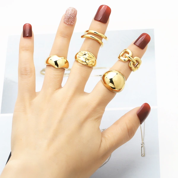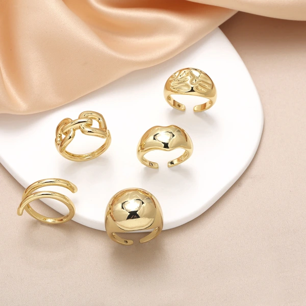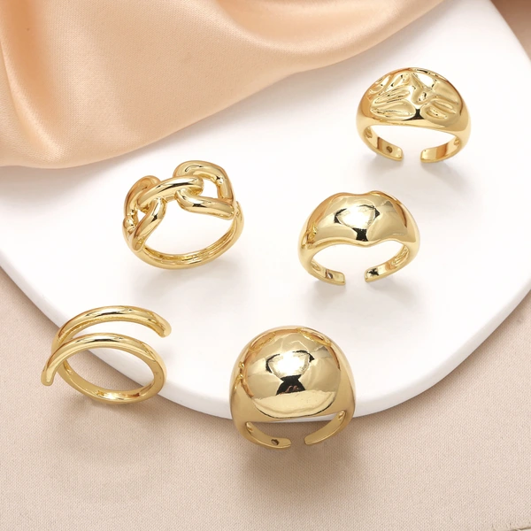 خاتم هندسي مطلي بالنحاس المصقول من الذهب الحقيقي، خاتم مفتوح من rim75، للبيع بالجملة كمجوهرات