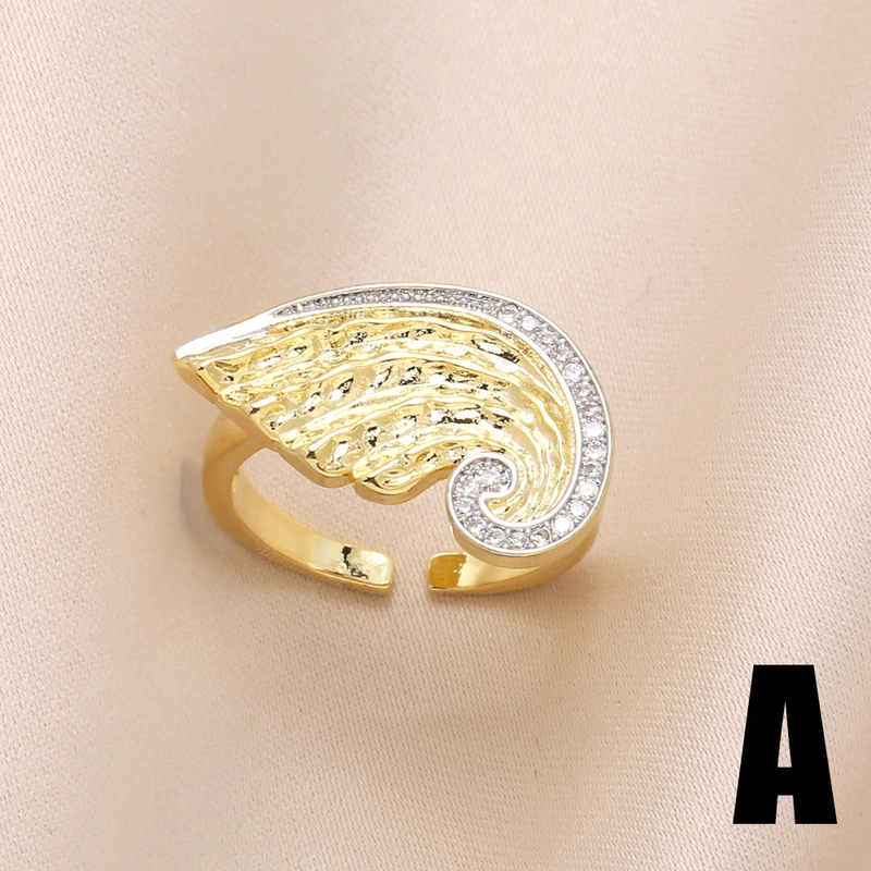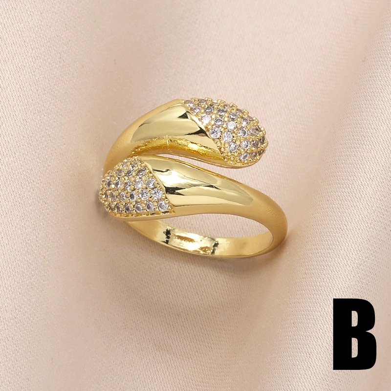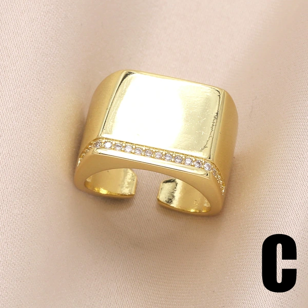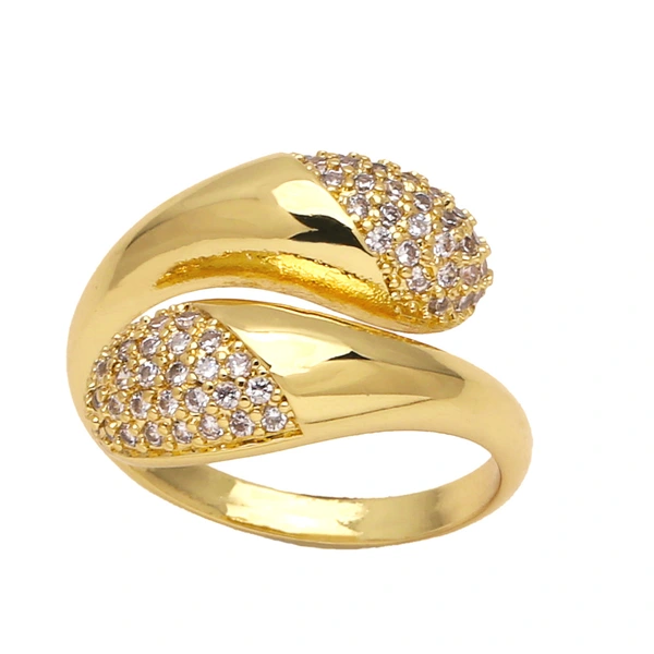 خاتم هندسي نسائي مطلي بالذهب مرصع بالزركون بتصميم هندسي رائج البيع كخاتم مفتوح rin24